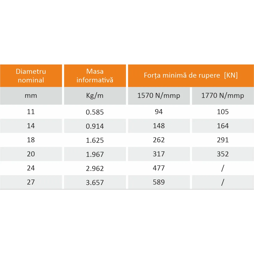 Cablurile de tracțiune sunt executate din oțel de calitate la standarde internaționale și se pot livra la lungimea dorită și în diferite dimensiuni (diametere) și tipuri constructive în funcție de aplicație.